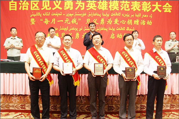 自治區(qū)隆重召開見義勇為英模表彰大會李成功總裁被授予見義勇為模范受到表彰獎勵