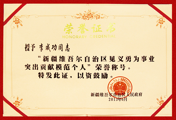 6月18日,自治區(qū)隆重召開見義勇為英雄模范表彰大會,新疆華春投資集團(tuán)總裁李成功被授予為自治區(qū)見義勇為事業(yè)作出突出貢獻(xiàn)的模范,與3名見義勇為英雄、2個(gè)見義勇為英雄群體和13個(gè)為自治區(qū)見義勇為事業(yè)作出突出貢獻(xiàn)的模范單位與個(gè)人,受到表彰獎勵。
